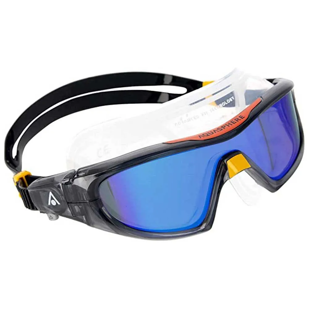 The AQUASPHERE Vista Pro Mirror Goggles in Dark Grey / Orange / Blue not only look stylish, but they’re also a top-of-the-line choice for all your swimming needs. These goggles provide 180-degree panoramic vision, UV protection, and an anti-fog coating. The mirrored lenses offer superior glare reduction and optimal visibility in bright conditions. These goggles are a must-have for serious swimmers and triathletes. Buy the AQUASPHERE Vista Pro Mirror Goggles today and experience the difference for yourself!