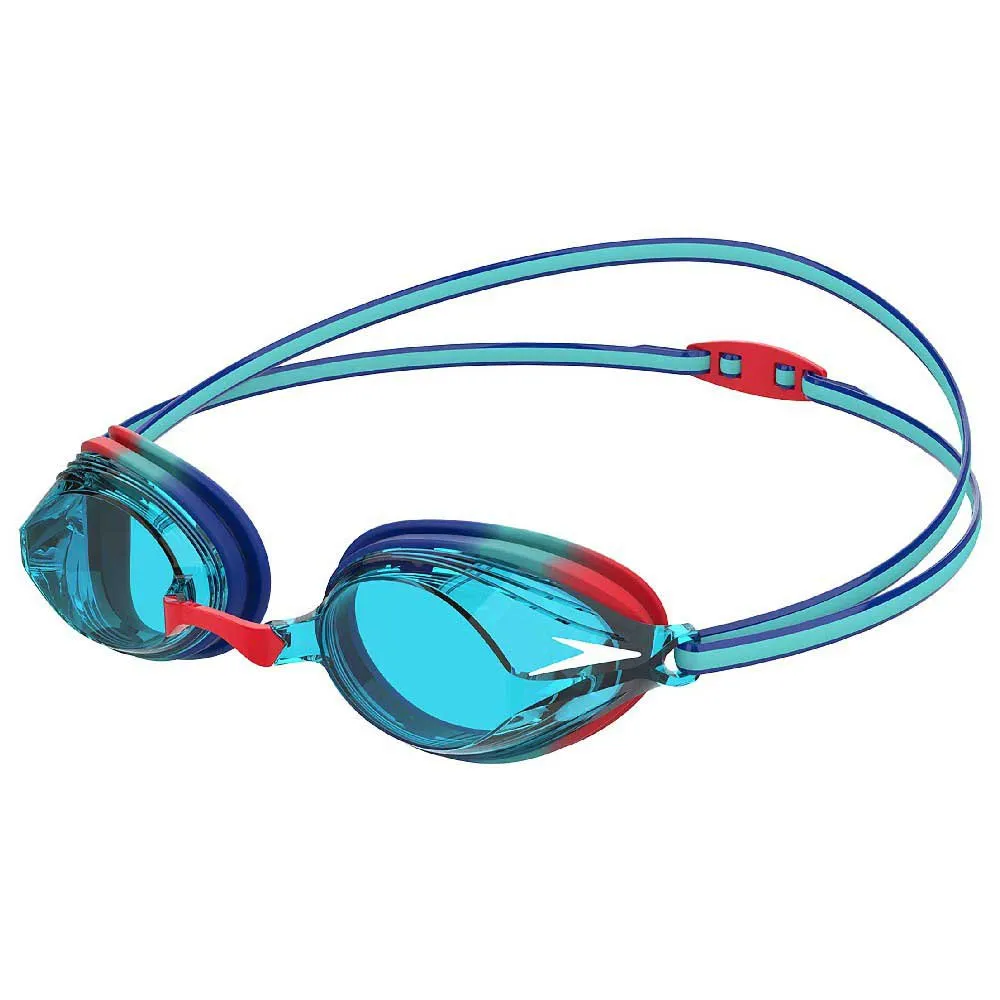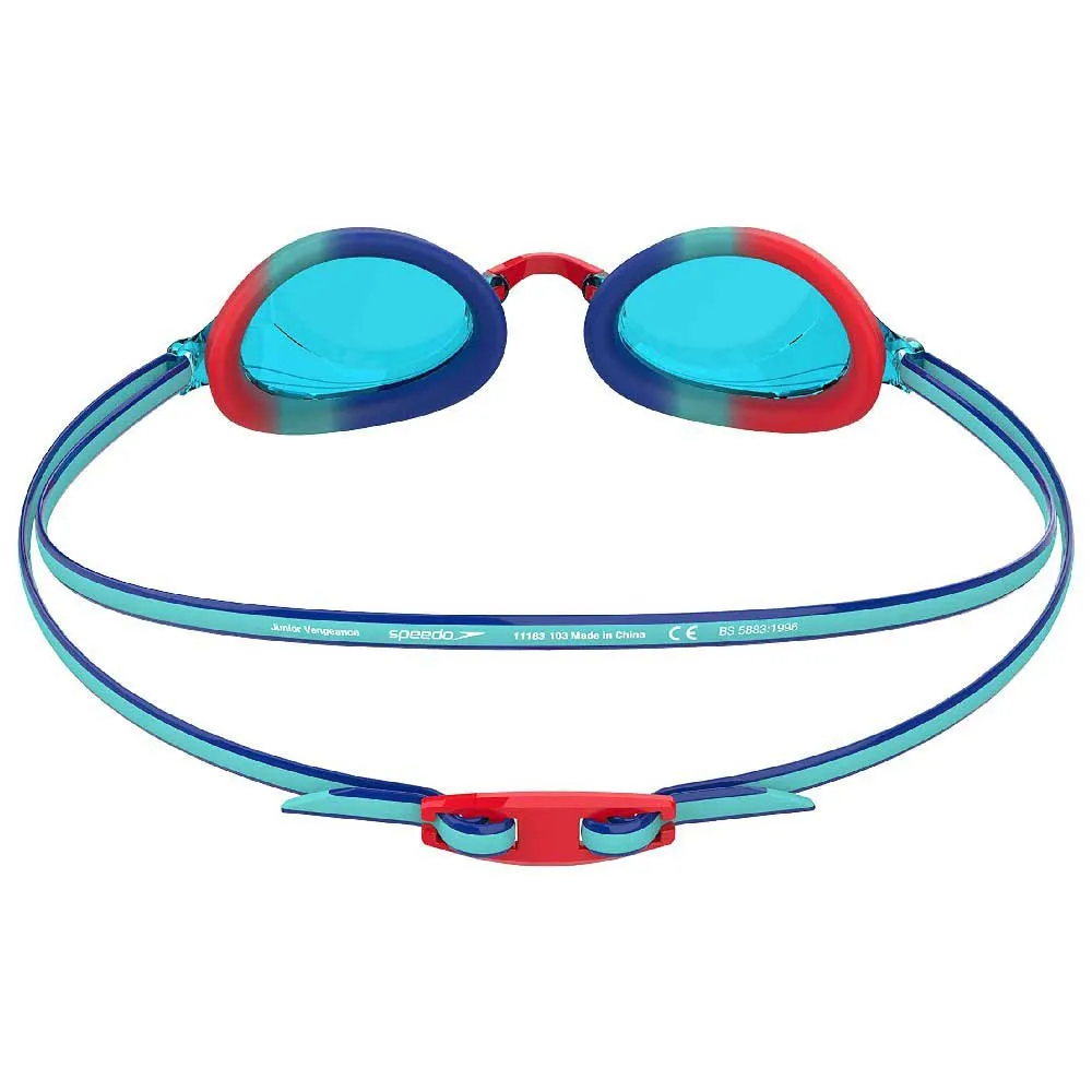 Built for racing and training, the Vengeance Junior goggle range pays homage to our highly popular Vanquisher Junior series. Featuring a new streamlined lens shape which cuts through the water, the Vengeance Junior goggle makes a statement both in and out of the pool. Light violet tinted lenses with multi-colour seals and straps; make your peformance stand out from the rest.