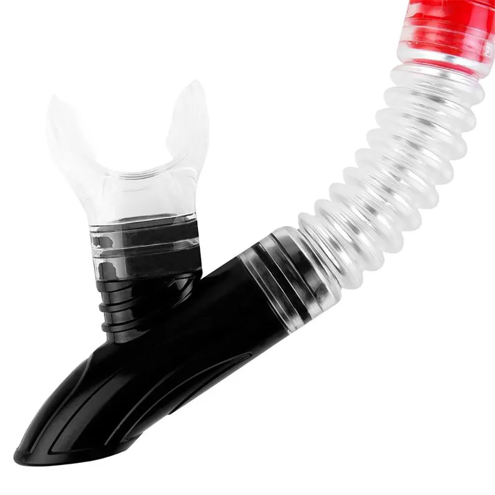 ParametersMask material:TG tempered glass, collar and liquid silicone strap, PC framePipe material:liquid silicone mouthpiece, PVC tubeBottom valve:yesAnti-wave tip:yesFlexible connector that makes it easy to fit the tube to your facePanoramic mask – increased visibility under water.